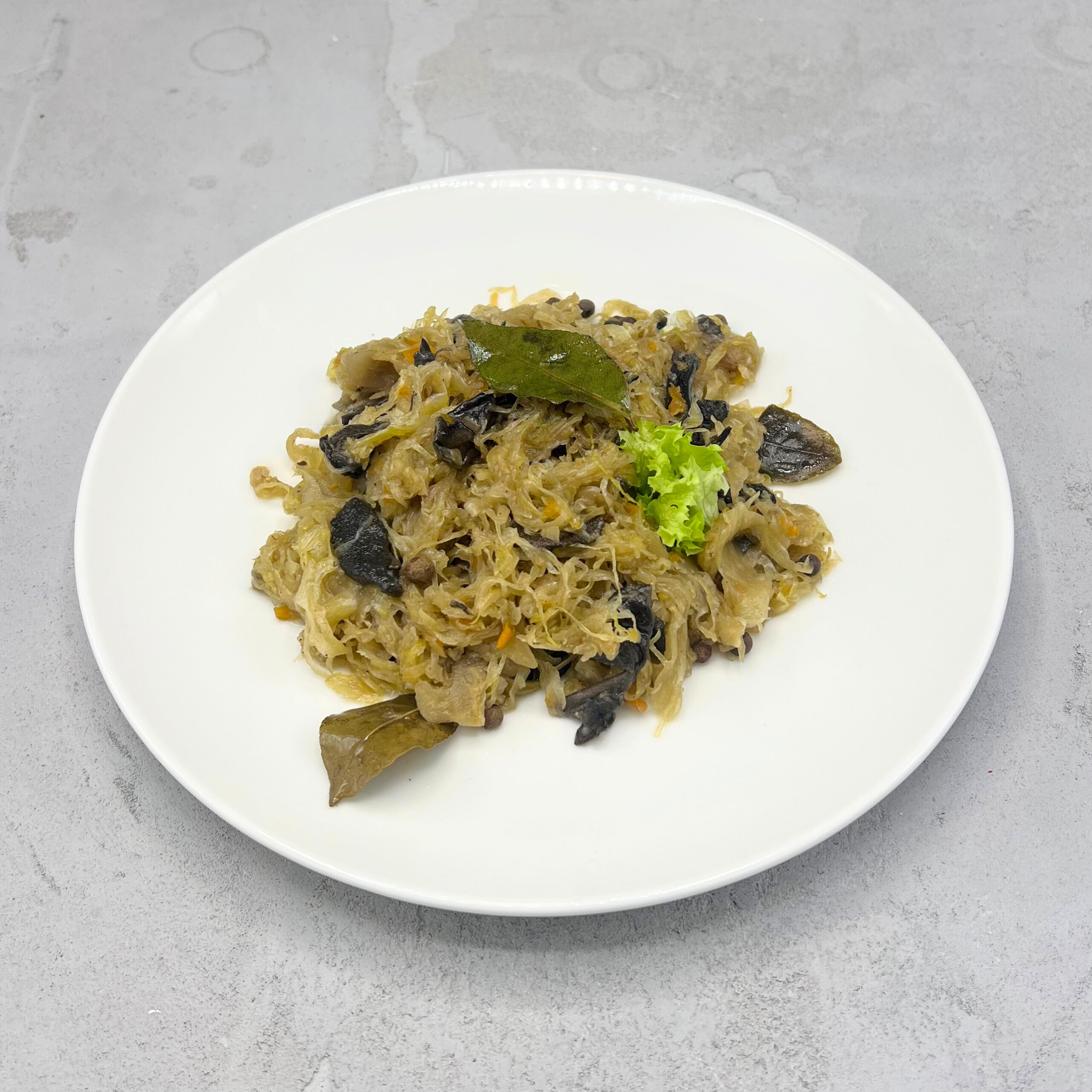 Skład- Kapusta kiszona, grzyby leśne, cebula, olej rzepakowy, sól, cukier, pieprz, liść laurowy.