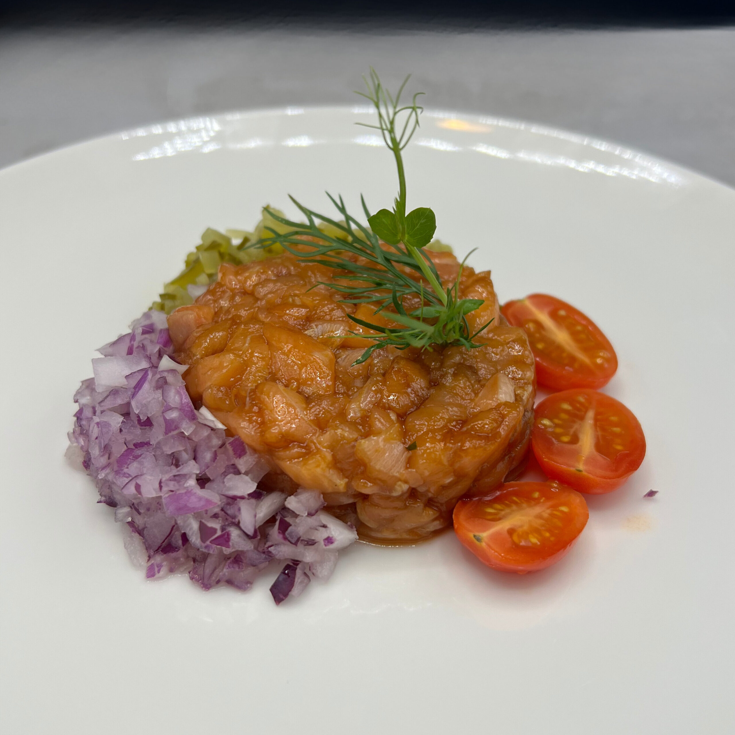Wykwintna przystawka z siekanego łososia przygotowana w tradycyjnym kaszubskim stylu. Intensywny smak ryby podkreślony nutą przypraw, tworzy niebanalne połączenie.