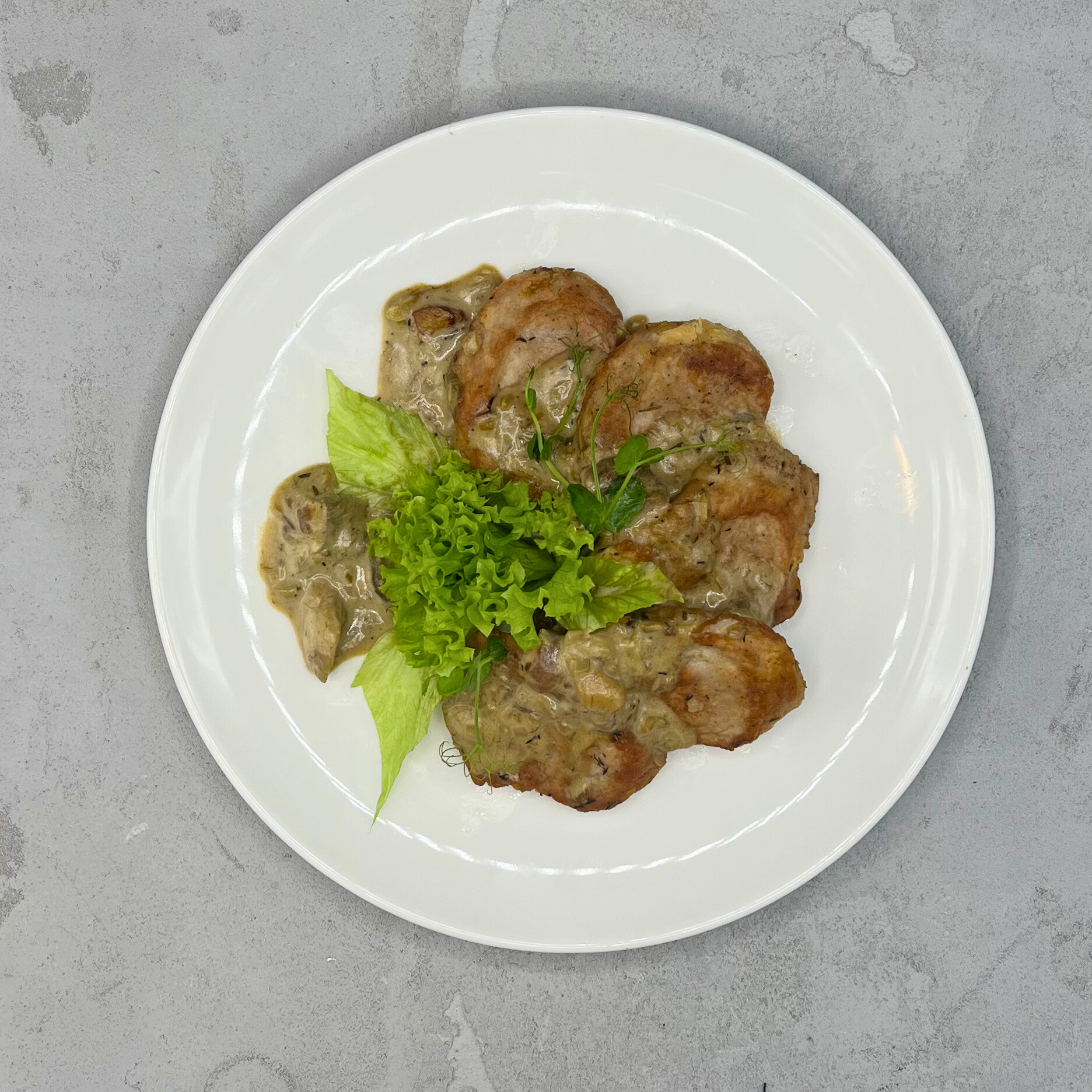 Przysmażane mięso, a następnie duszone do miękkości w aromatycznym sosie na bazie grzybów leśnych.