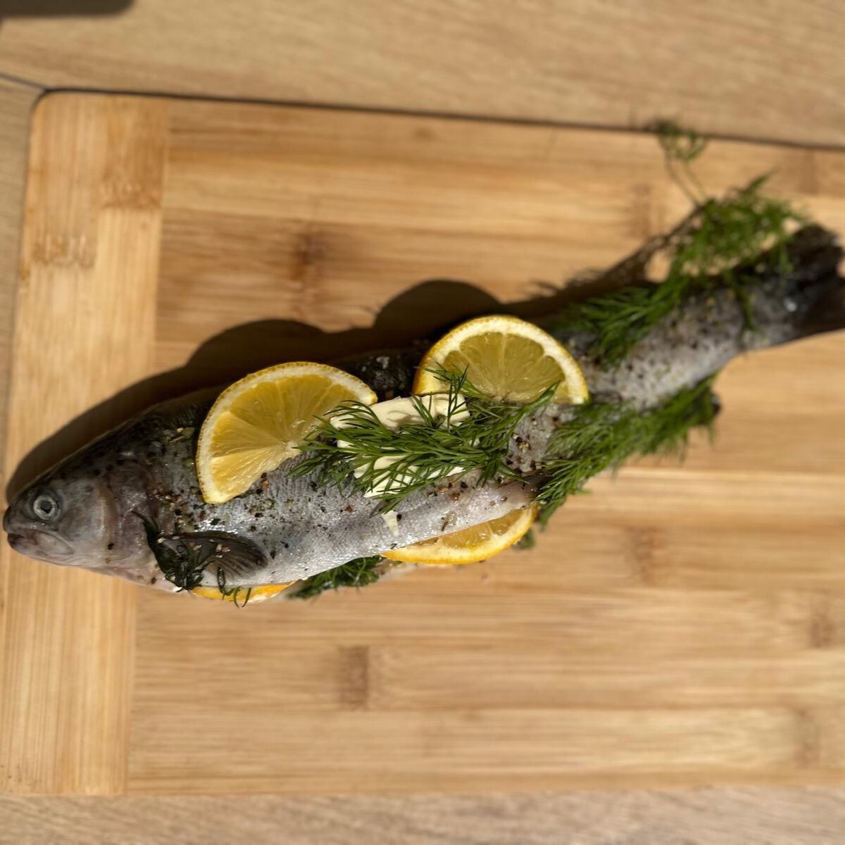 PSTRĄG Z MASŁEM, CYTRYNĄ I KOPERKIEM