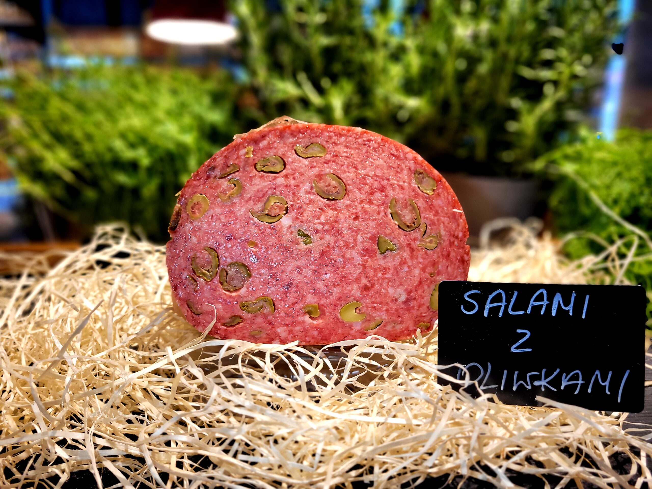 Hiszpańska kiełbasa drobno rozdrobniona, długodojrzewająca, z mięsa wieprzowego z dodatkiem oliwek.