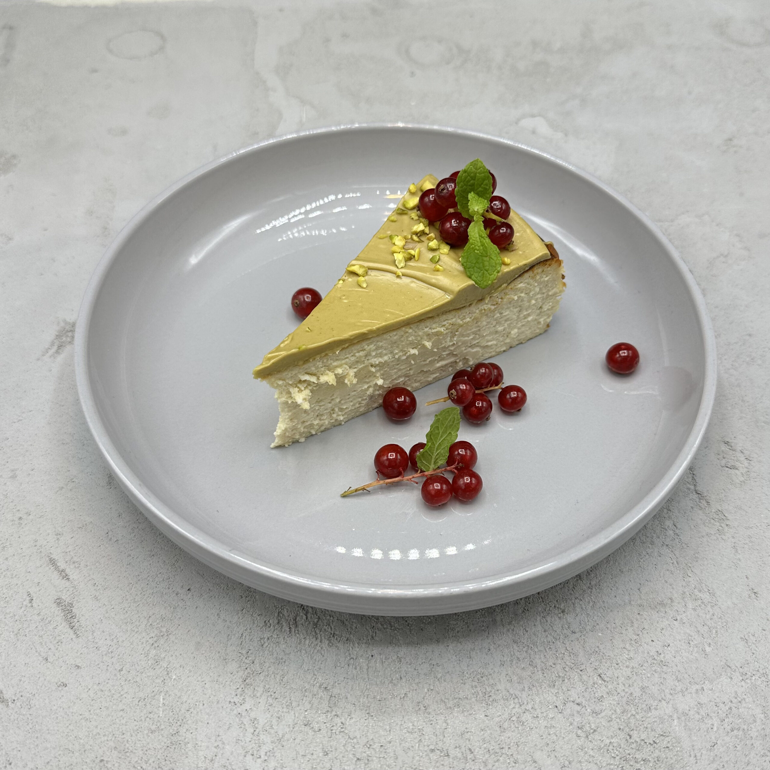 Kremowy sernik baskijski z polewą z pistacji, który zachwyca intensywnością smaku i aksamitną strukturą. Pieczony na sposób baskijski, dosłownie rozpływa się w ustach. Nuty pistacji dodają mu wyjątkowego charakteru – elegancki i wyrazisty deser.