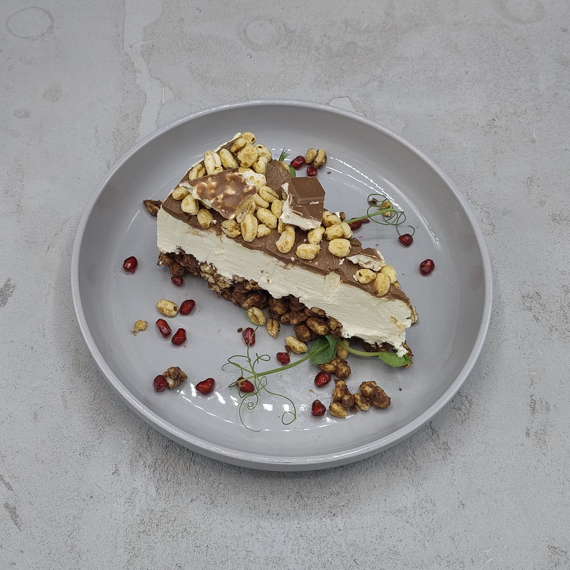 Połączenie delikatnego sernika z mlecznym nadzieniem i chrupiącymi dodatkami, przypominającymi Kinder Country. To deser, który zachwyca zarówno wyglądem, jak i smakiem, idealny na sylwestrową ucztę.